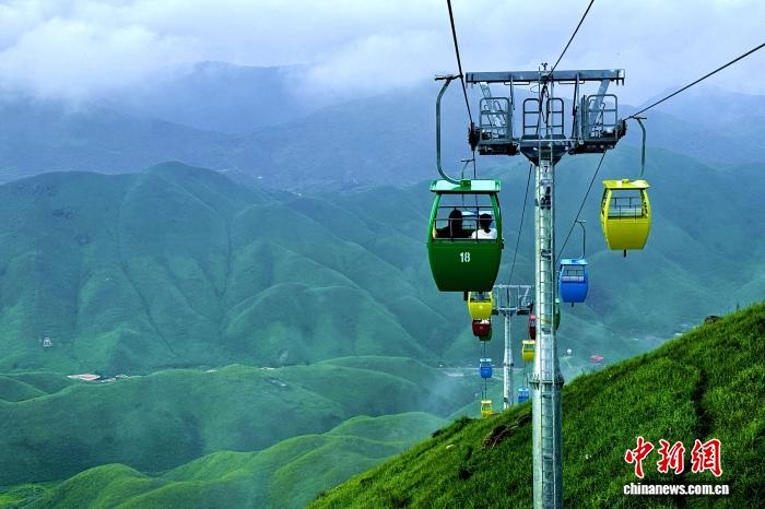 7月27日,游客在柘荣鸳鸯草场体验高空观光缆车。 陈惠珍 摄自今年7月开放客运索道以来,柘荣鸳鸯草场吸引大量游客前来。索道全长530米,高差195米,游客可轻松登高俯瞰壮阔美景,享受清凉山风,感受“云中漫步”的独特体验。