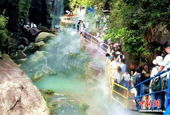 炎炎夏日,福建省宁德市柘荣县正以清凉山水,吸引四方游客。